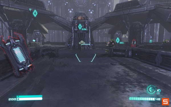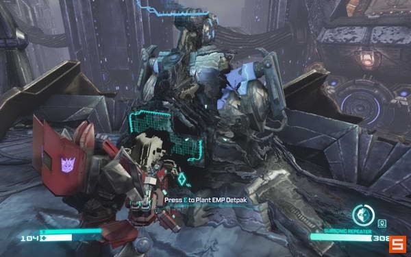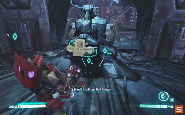 之后则是在三个平台前进,分别瘫痪三个平台的EMP能源站。之后再瘫痪最后的中间总操控平台。整体的难度较大,玩家可切换为飞行机甲状态通过发射飞弹来区域杀伤这里的敌人,同时多注意掩体的利用,红蜘蛛还是相当脆弱的