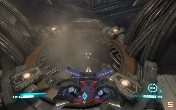 之后来到第一个场景,此时声波为了测试钢锁新的战斗程序而在这里设下了全套。本场景主要是让玩家练习如何使用投掷能量弹攻击飞行类敌人