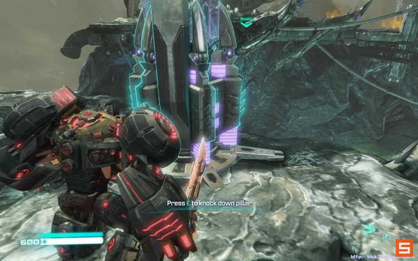 之后的路途没有什么太难的地方。比较要求的技巧的如下图所示,即要在门外的能量塔恢复之前将能量弹砸爆对面的能量塔,即可开启损坏的大门