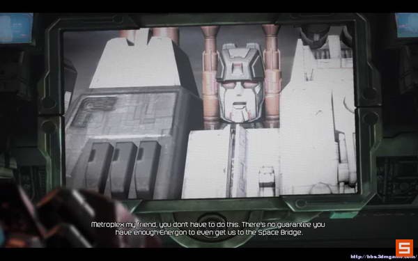 而失去与钢锁联络的擎天柱只好抓紧启动方舟,准备离开这里。但是由于方舟的能量由于之前的运输车被破坏导致能量不足,猛大帅于是将自己的能量传输给方舟,牺牲自己来保全剩余的博派离开塞伯坦