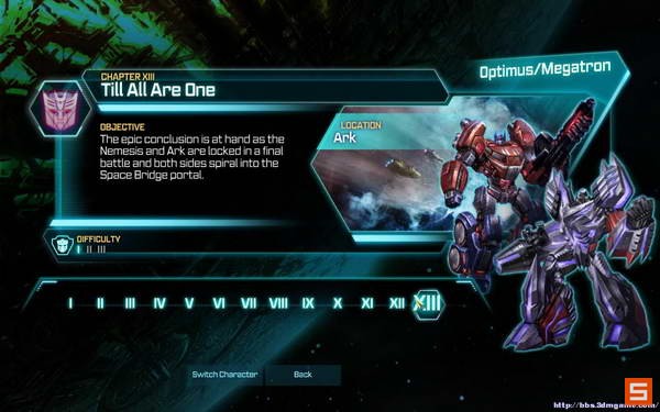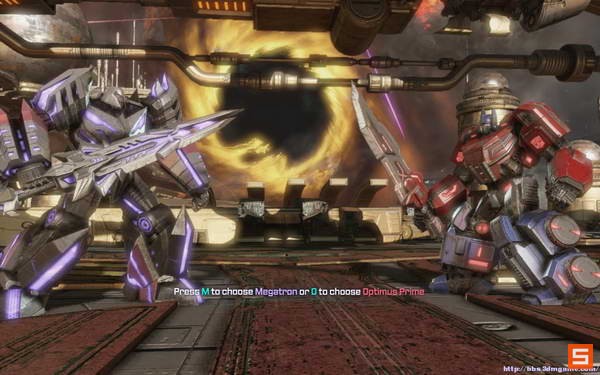 最后则是回到开头动画,威震天和擎天柱的最终对决。这里你将进行选择,无论如何,最后结局还是一样的,大家都被吸入了黑洞生死未卜