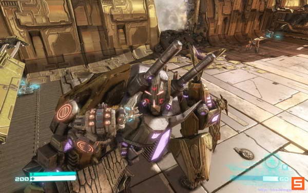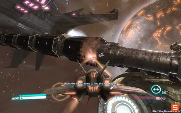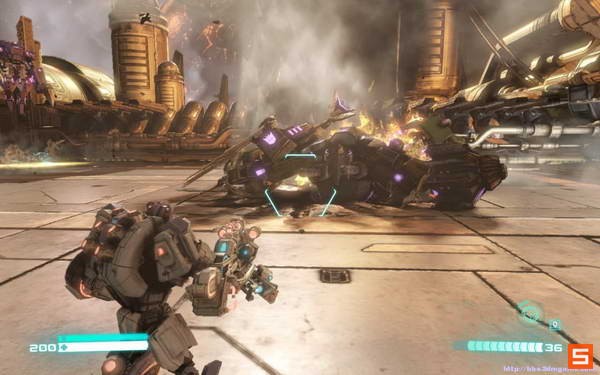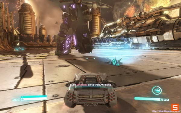 然后则是扮演混天豹一路杀向引擎核心让方舟失去动力。这里注意要按CTRL抵挡装甲火炮的攻击