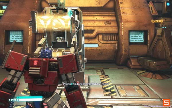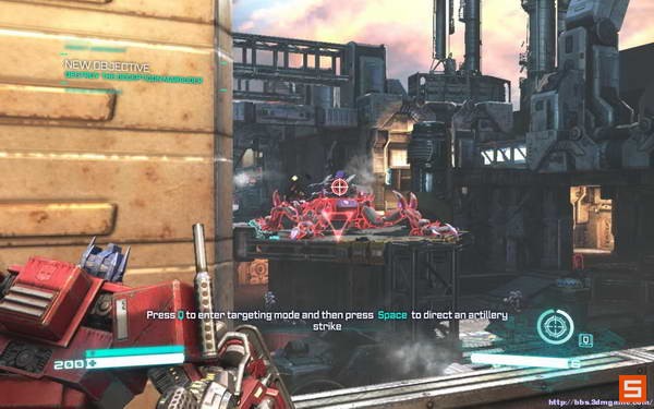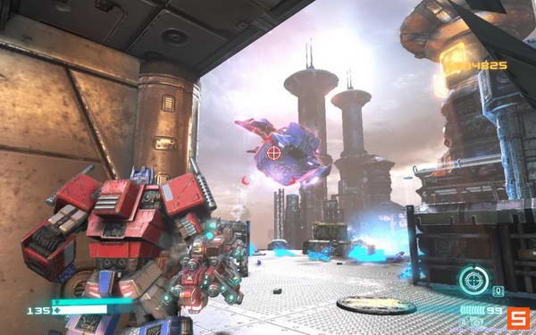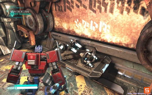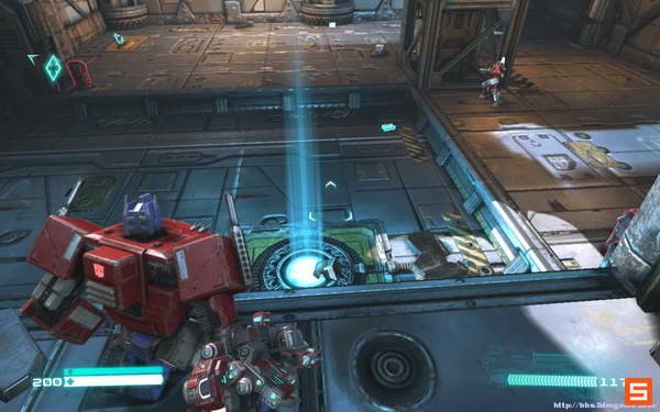 注意下图所示的能量柱。通过这些能量柱可以让擎天柱跳跃到高台的区域,后面会出现很多类这样的物体,而且很多是前行的必经途径,玩家一定要留心。