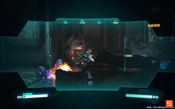 来到下一个平台可以遇到霸王虎派最强的杂病,收割者。这个收割者唯一的弱点就是他背后的喷射器,也是唯一的有效伤害点;正面和侧面对于她的伤害基本都无效。因而玩家的策略就是在他冲刺之后的僵直时间绕道背后集中攻击她的喷射器。而且切记不可与此怪物近战,否则会很容易死亡
