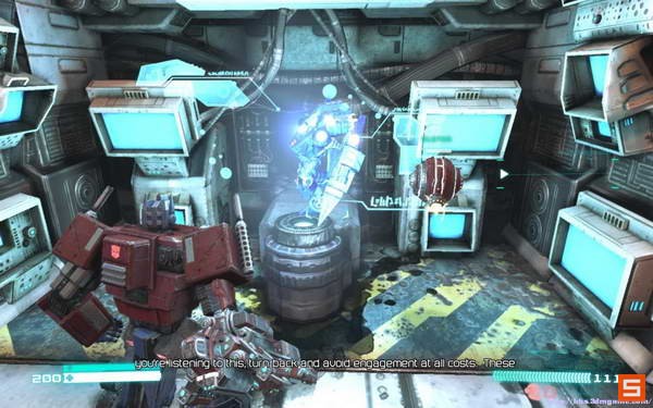 来到炮塔的下层,擎天柱在这里来到一个神秘的区域,启动了猛大帅
