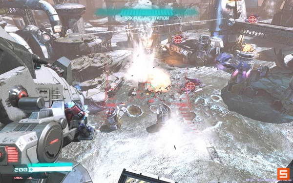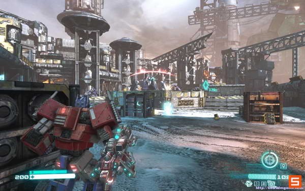 后面的战斗没有什么太大的难度。该系列游戏业没有什么岔路或者迷宫之类的场景,玩家只需按照地图指示的方向前进即可。由于本场景大多数时间擎天柱是以一敌多,故多使用远程瞄准的技能来攻击成群出现的敌人