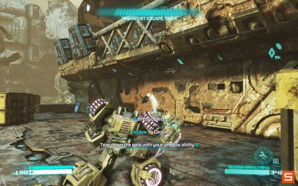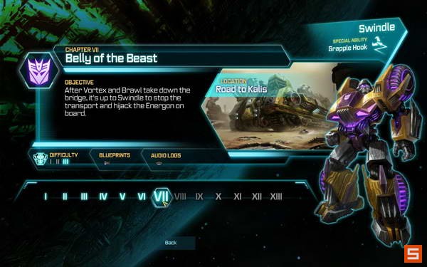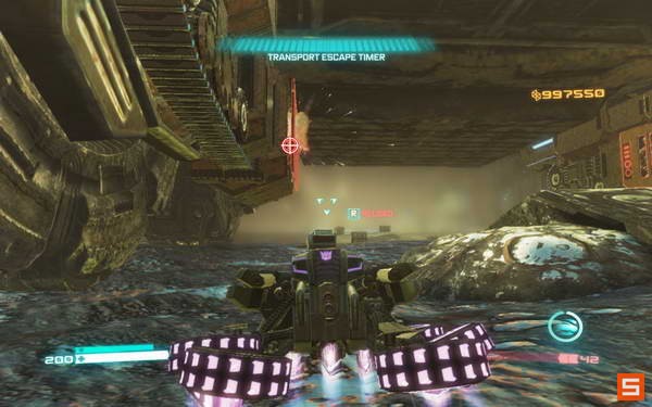 之后切换到诈骗。诈骗唯一的有威力的地方在于变身模式之后的能量炮攻击,其余就没有什么过多的优点了。本章的目的也很简单,摧毁四个轮子的能量槽从而阻止整个运输飞艇的前进