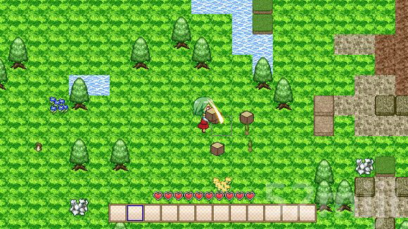 因为这是2D游戏,所以建房子只需考虑“墙”和“门”即可。常用的建筑材料包括土、木、沙、石、砖和羊毛,这里以最容易获得的“木”举例: