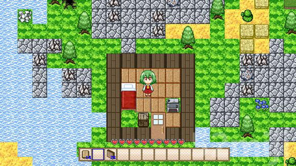 拥有“床”、“工作台”、“熔炉”这三件东西后,就可以开始搭建自己的小屋了