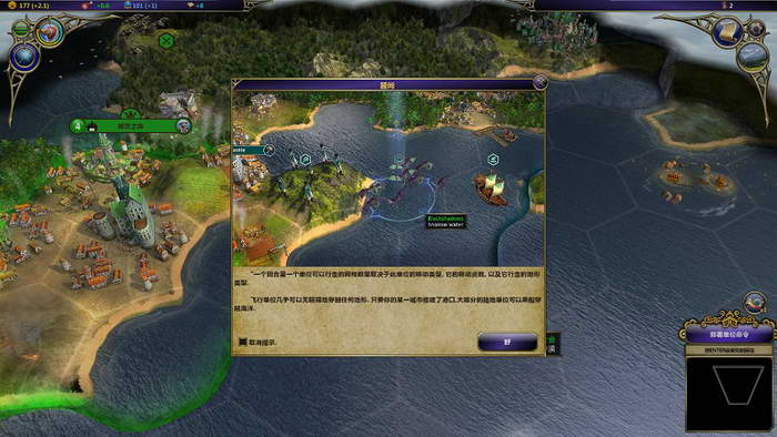 飞行单位可以无障碍的再水上陆地上移动,而陆地单位进入海上或者从海上登陆都需要消耗整个一个回合的行动点数。这就要求玩家在选择行进路线的时候要合理进行相应的规划