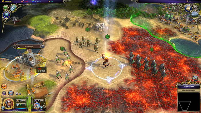 游戏的单位操作系统也类同与文明系列。单位的移动取决于地形的优劣,平坦的地形可以畅通无阻,而特殊地形(丘陵熔岩则会大大影响部队移动)