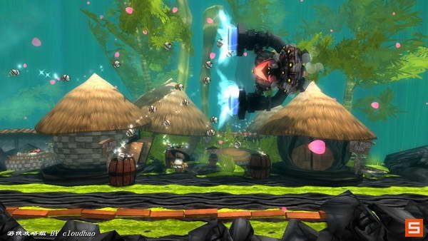 来到一块大型广告牌前面,提示你连续按攻击键可以出连击,大师的手真的很短,貌似是左右各一斧,然后原地旋转攻击。一开始遇到的小怪没有任何攻击动作,放心地连击吧。收集酒坛子数量,干掉小怪数量都是游戏过关的统计项目,至于快速通关,可以等二周目再挑战。走出一个牌坊,序章就这样结束了。
