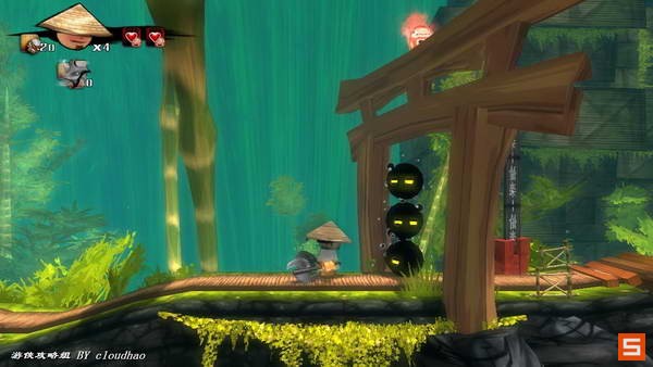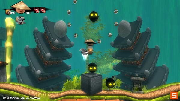 这一关相当简单,一路上的小怪不会咬人,连动都不会动,我们要做的是收集所有的酒坛子,有一些是藏在箱子里面的,需要打破才能拿到。
