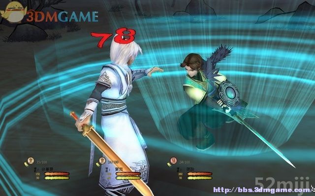 在山道上建议将队员练至3级,然后在存档点补满体力。在迷宫里端的空地上遇到青年,一场战斗随即开始。暮云和柏乔主攻,在开始用暮云的“破势杀阵”降伤害,兰茵则用法术或药物回血,将青年打至半血后,他会幻化出两个分身,本尊追加打群体的“靛光裂地”技能,而那两个分身的能力偏低,并且不会使用任何的技能攻击,尽快找出本尊的位置全力击倒。