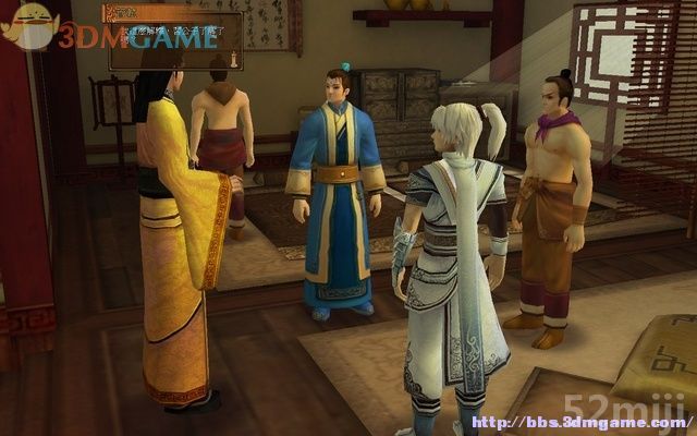 来到木工房和工人谈话,得知他们的师父老穆前往客栈买酒去了,于是前往客栈找老板谈话,看到花府的李总管在向管氏叔侄送礼,然后得知老穆买完酒就回去了。回到木工房找老穆谈话,得知木工阿旋去照顾生病的王十老爹去了。前往徐府旁边的王十家,老爹说阿旋去北邙山采药去了。