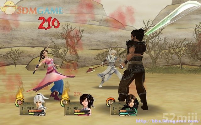 在离开洛阳前先到药铺和武器店采买一下,补充生命和体力的跌打伤药和消疲丸多备一些。往洛阳西北方到黄土高地,勤勉好学的久悠要记录此处的风土人情,耽搁片刻后沿着风沙弥漫的道路前行。在中段迷宫的存档点附近刷怪练功,把队员提升到12级左右,接下来有几场硬仗要打。在路上遇到劫道的强盗,为首是一名使刀的黑衣汉子。在开始会上场一群小喽罗,用暮云的“雀连焰舞”轰前排,久悠的“靛光裂地”轰后排,两回合清光。