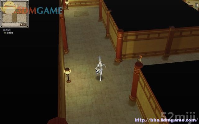 来到通往大殿的走廊又有新花样,在这里要和守卫玩躲猫猫,去搬一只铜炉到入口处。那只铜炉在迷宫的东边,要避开两名守卫的视线绕过去。放完铜炉打开东边的一道门,进去转动一只香炉,用它开启西边走廊的房间,里面有宝箱有踏风草鞋,最后就可沿着顺时针方向绕到迷宫南端的大殿了。