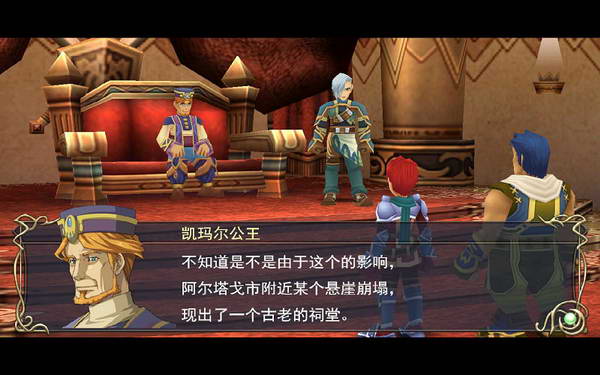 国王叙述最近阿尔塔戈城外最近奇怪的地震事件,并且希望亚特鲁和多奇可以去城外西北部的祠堂哪里探索到底有什么事情发生