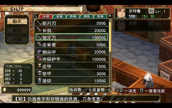 对话结束,千龙长塞亚斯赠送给亚特鲁和多奇最基础的武器 新月剑和护腕