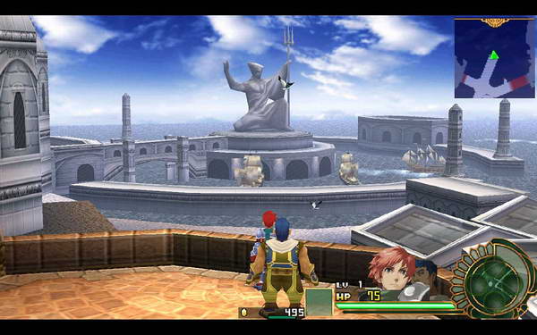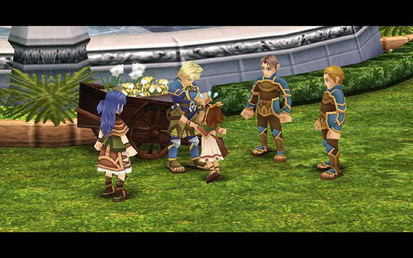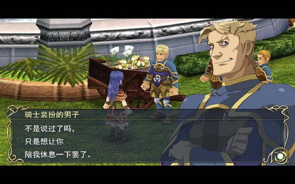 一路往北来到阿尔塔戈市的中心广场,发生剧情。阿尔塔戈的骑士千人长企图猥亵一旁的蓝发卖花少女,而刚才的黄发少女赶来也被欺辱,二话不说亚特鲁英雄救美的时刻到来了