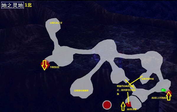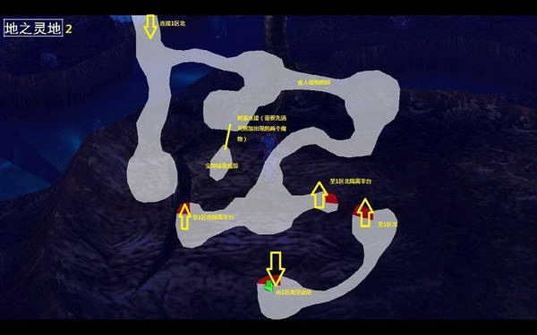 地之灵地的构造不是太复杂。基本就是在几个区之间来回跑,而你最主要的则是需要使用原始树液开启花瓣,打开通往核心的道路。具体见如下的标注