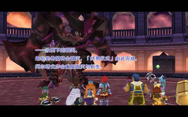 打败月龙之后。月龙将最后的真相告诉了众人。原来阿尔塔戈是由龙和理所创造的世界。龙代表光明面,给予人类以希望。而理则代表黑暗面,毁灭阿尔塔戈带给其重生。一旦阿尔塔戈失去和谐,那么毁灭之风就会出现让这个世界重新回归平衡。伊斯卡族长的宿命正是给这个世界召唤毁灭之风。而龙之战士的意义在于给予人们希望,去同理对抗。但是无论如何,这一切都需要龙之战士自己去决定是否拯救这个世界。最后月龙给予亚特鲁月之灵石并且强化了亚特鲁的EXTRA技能