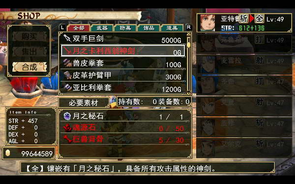 此时由于得到了五大龙的秘石,你可以在伊斯卡隐之村的道具店合成终极装备了。但是这些终极装备所需的大部分材料都主要在魂之井的战斗中才能取得