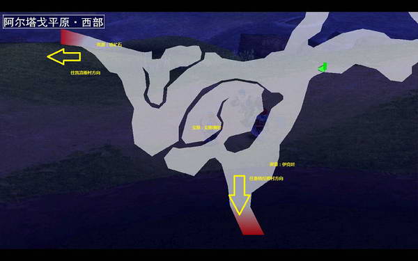 依次经过阿尔塔戈平原 中央部 西部 西南部即可来到洞窟间道门口。具体可参照下面的地图标注