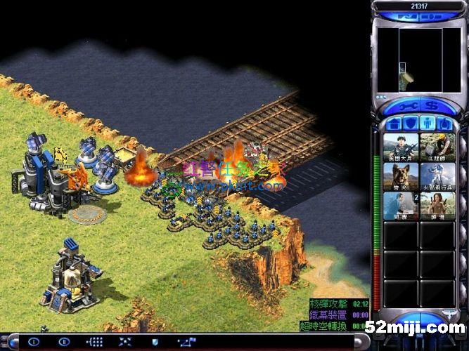 基地内用大兵或狗防御敌人的空降,桥这里可以用大兵防御敌人的进攻。这关忘记了有没有核弹攻击我方。有就把重工建造得远些吧。