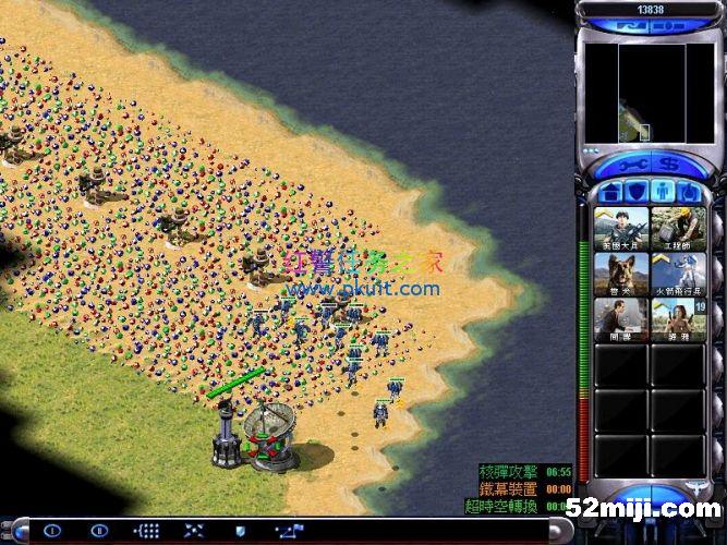 最好是先占领这个基地,用飞行兵探开地图。用自偷进入我军科技实验室的方法得到超时空突击队后编好对,一个一个的到达基地旁边,敌军的天启在打你的同时围墙也会打开的。打开后编好队的突击队速度到达基地旁边就可以使它归顺我方了。