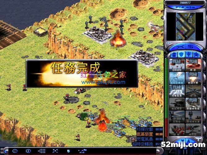 这关也是在于早期的防守。早期防守的好就比较容易通关了,出来后拉四辆天启到桥哪里去防守,留辆天启到核电站旁防御。同时在基地内和桥那里造防空炮