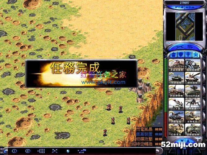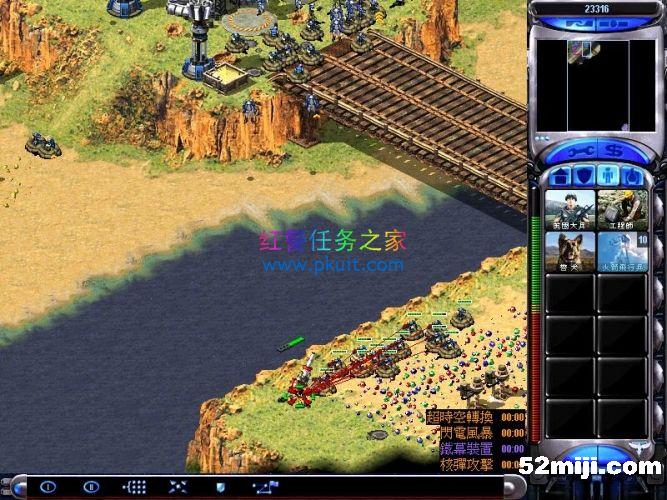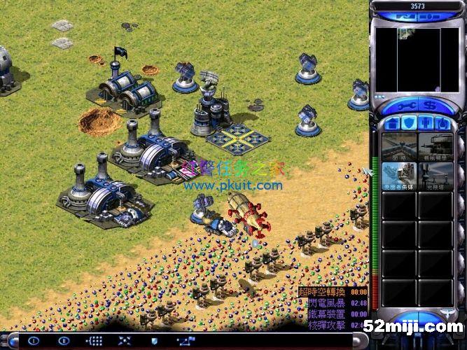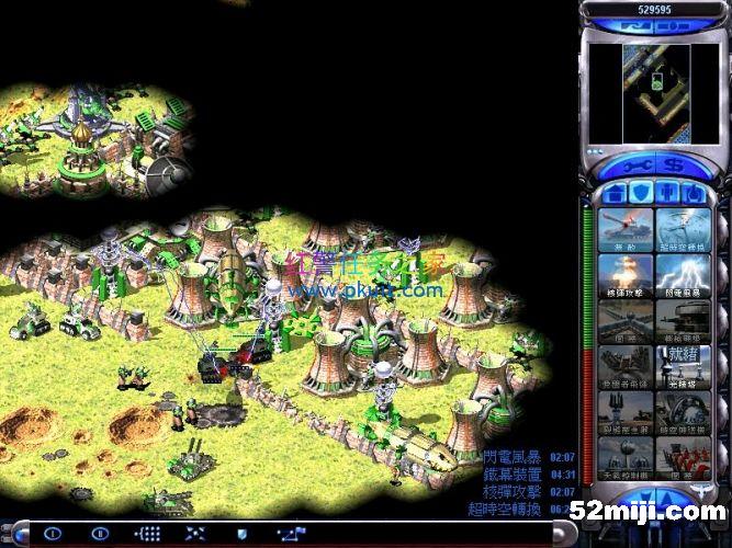 这关算是比较有难度的了,所以我讲的详细点,一样的是早期的防御。不过还好那超级武器再没有变为我方的时候是不会来攻击我方的,变为我方的一瞬进有可能核弹会投在我军基地内。