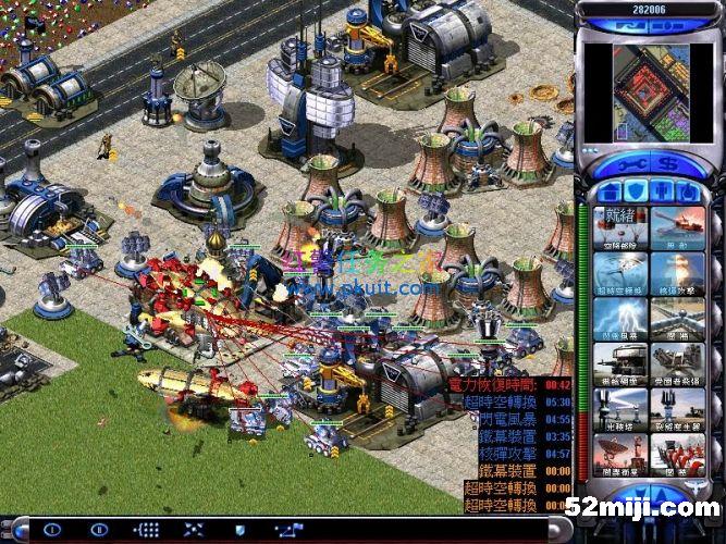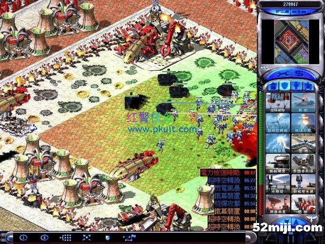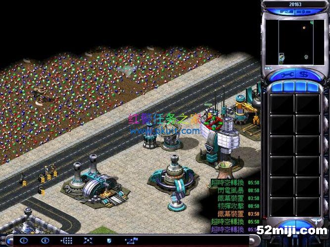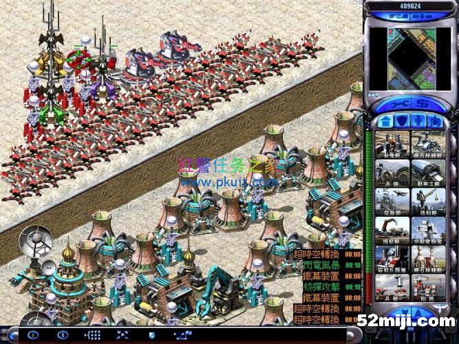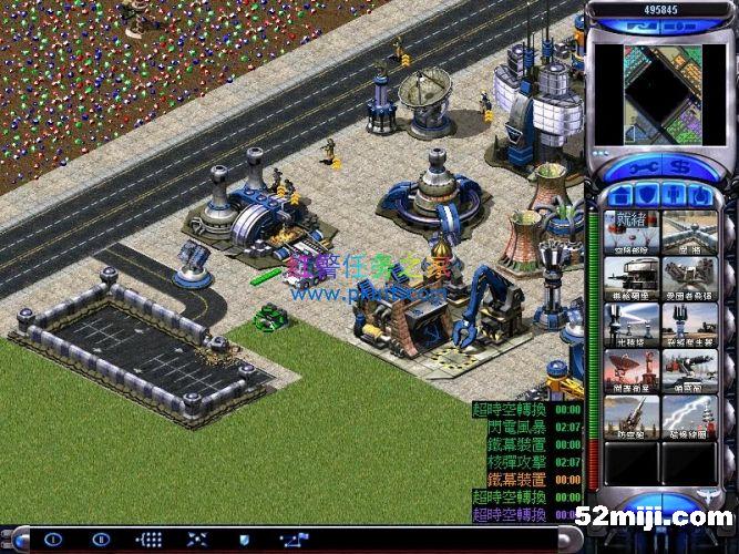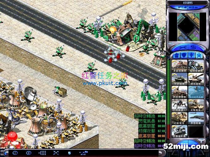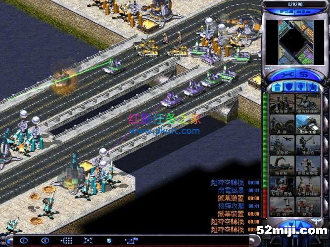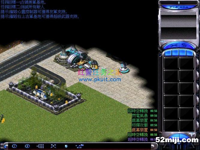 间谍自偷进入盟军超时空伊文,然后伊文绑上炸药瞬移到左上角的心灵控制器这里摧毁这三个心灵信标,一切OK了,三个敌军绿紫黄的电脑就变成我方盟军了,现在没人来进攻你,只要注意防守好我军基地的海岸线的基洛夫就行了,