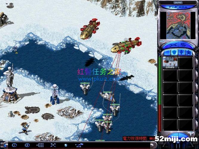 中间的两个苏军基地也一样,可以用飞行兵摧毁。这是大量的基洛夫来袭,注意防空。主要方向就是地图从中间分开左边的一块来袭。这个用伊文去解决,怎么出超时空伊文和怎么用想必不用我再说了吧。