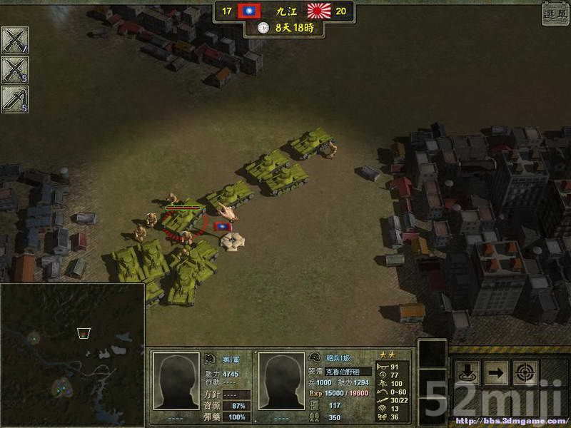 国军孱弱的部队自然不是日军机械化坦克集群的对手。当然玩家也可利用地形来消耗日军的力量。譬如九江南部据点,可以将日军诱如口袋里面给与伤害
