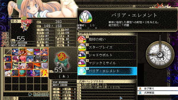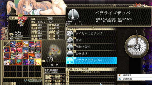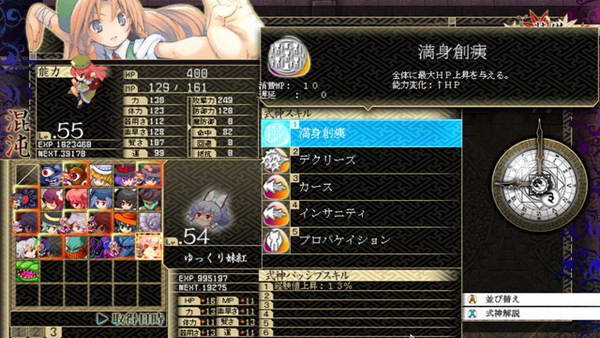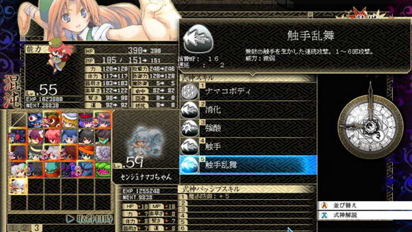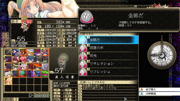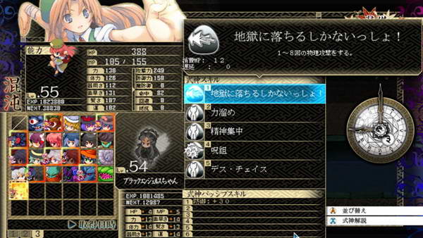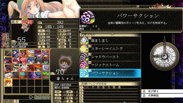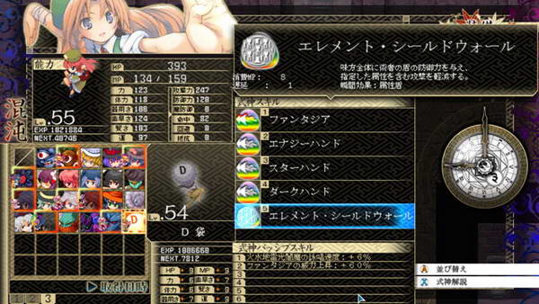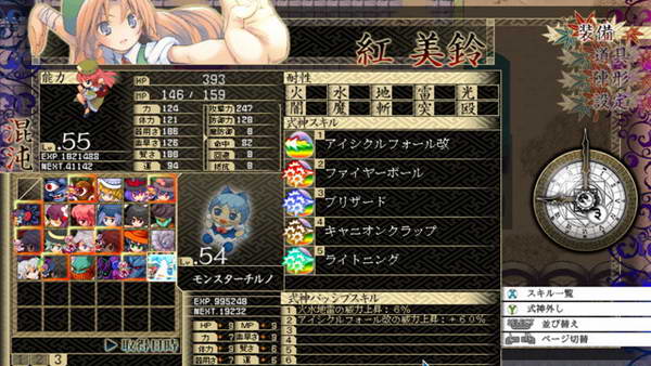B和残机:遗憾的是前作的BOMB系统不见了,残机限制也取消了。战斗死亡后仍然能得到经验,战斗结束自动复活,如果战胜敌人后我方全灭,仍然算我方胜利。SC:这次暂时我只知道LSC的存在,发动条件和前作一样,攻击或者被攻击时随机出现,几回合后消失,每个人物开始一种,后期就不清楚。