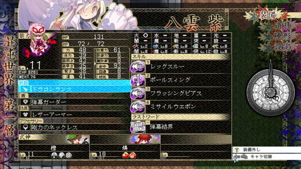 >地图:看起来比以前华丽,机关也多了,场景间的前进后退都需要通过魔法阵,好处是通过查看迷你地图可以直接知道该画面有多少个出入口并知道位置。另外>大地图被取消,在任意地点调出幻想乡地图就可以进行瞬间移动,想去神社什么的一下就能到,省去大地图走路过程很多。