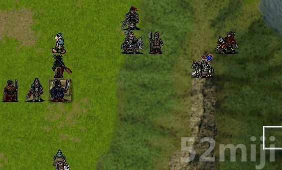 第一回合,姜维冲到最前面霸气,赵统给姜维加速,杨兰走到如图位置,不然会触发夏侯霸单挑,就无法完成姜维对话夏侯霸了。廖化走到最下面吃个统帅果(到S了),李歆给敌兵放个降敏捷,并准备下回合回合傅彤。