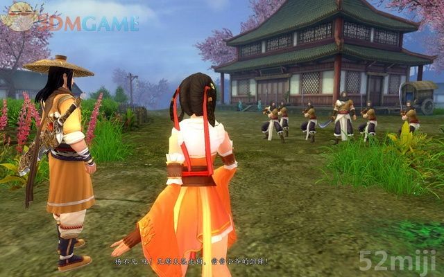落英阵的入口就在大殿的对面,这里生长着很多的桃花,令人赏心悦目。此时,大群的天忍教弟子杀至,杨不凡和小酒儿打算留下来阻敌,由小离一人进入落英阵。小离的选项:
