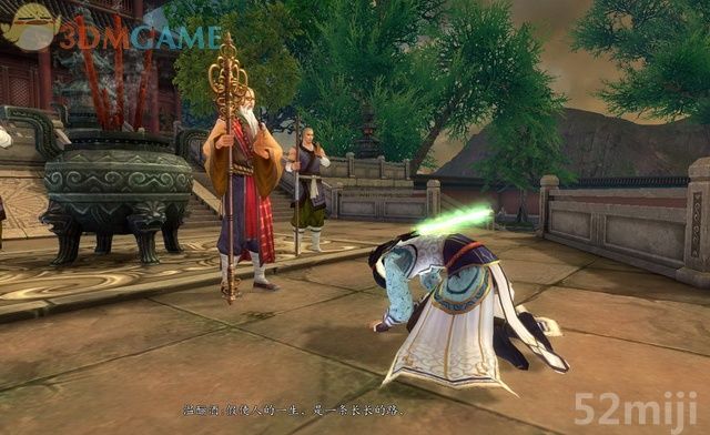 南宫离跪拜在少林方丈法诲的面前,剃度出家。