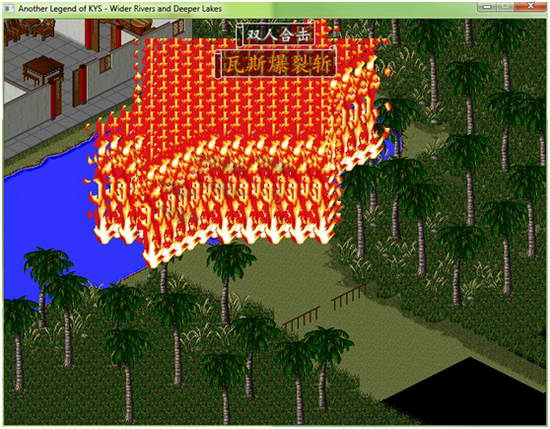 苗人凤居战斗:胡田暗器,段誉堵门,注意拉开距离如下图: