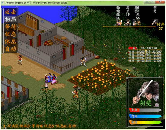 闯王宝藏一路杀过去拿宝物.这下有钱了. 泰山派战天门等人主角到16级 摩天崖战谢烟客触发侠客行后续剧情,顺便把罗汉伏魔也拿了 恒山派战定闲师太等 崆峒战崆峒五老,此战对于目前我方稍微有些难度,请利用胡斐,田伯光,忽兰的暗器将突出在前的两个敌人解决掉,李文秀注意兰花控场,杨过朝前吸引下火力,不用药过关不是问题 昆仑战何太冲 擂鼓山战四大恶人.此战由于缺少段誉,所以较有难度.先按下图排列队友: