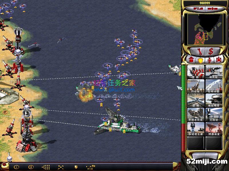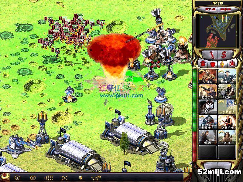 断电进攻吧,飞行兵编好队分队同时摧毁建造厂,然后摧毁核电站