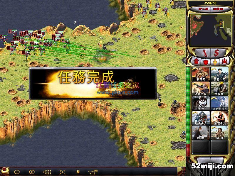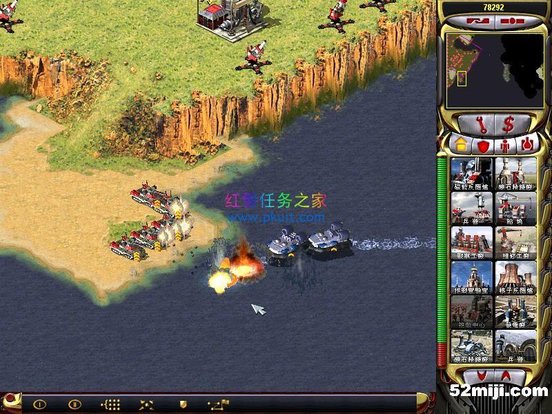 忘记了这关有没有敌军的兵营和重工在我方基地内。没有就自偷吧。一样发展兵力同时加强海岛周围的防空炮。(貌似不发展电脑也攻不进来。不过第二栏的没有什么可造的闲着也是闲着所以我就加强周围的防御。反正也不是坏事))。(最佳通关兵种间谍,飞行兵,。最佳防御兵种天启坦克。)