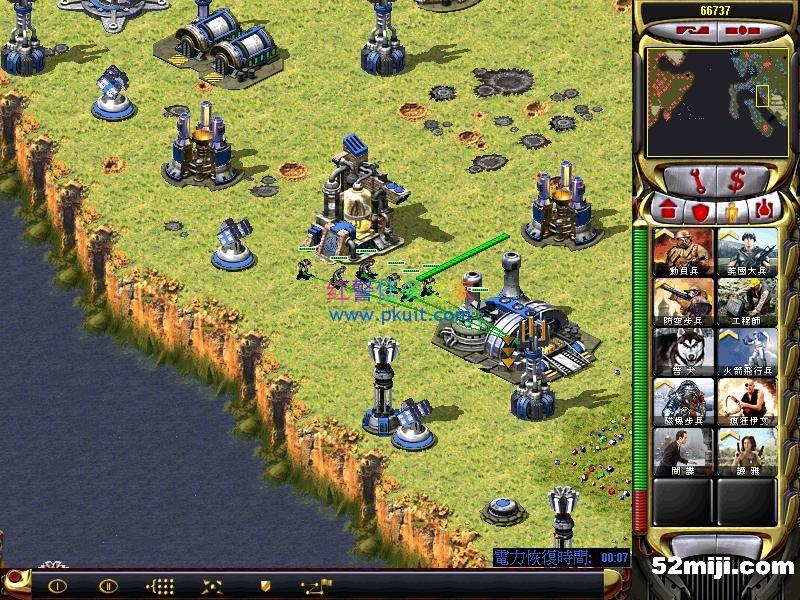 飞行兵编好队,不断断电。大概有三个还是四个建造厂吧。各队飞行兵去摧毁。